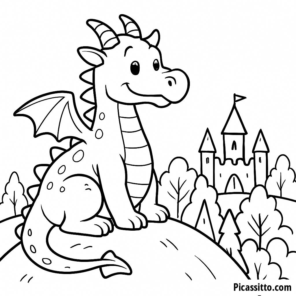 Tauche ein in eine Welt der Vorstellungskraft mit diesem kostenlosen Ausmalbild eines freundlichen Drachen, perfekt für junge Künstler!