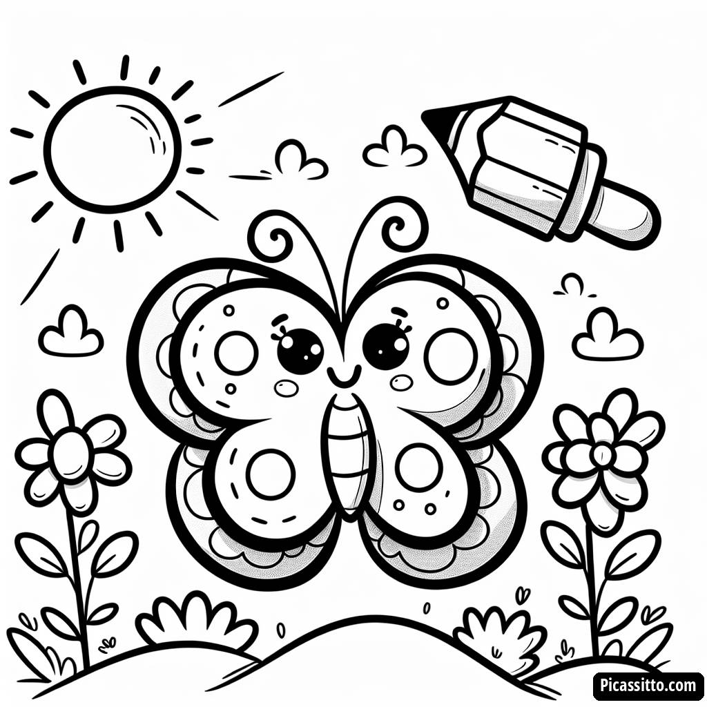 Download this free and printable B is for Butterfly coloring page featuring a beautiful butterfly surrounded by flowers and sunshine. Perfect for kids who love to color!