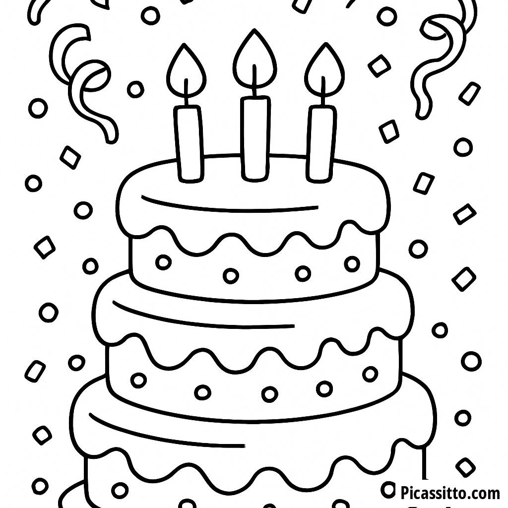 Celebrate with our free and printable big birthday cake coloring page, featuring candles and confetti! Perfect for your birthday party activities.