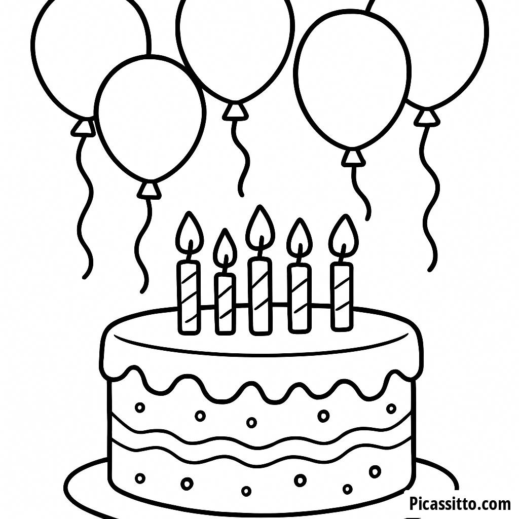 Celebrate with our free and printable Big Birthday Cake coloring page, featuring colorful balloons and candles to brighten up your birthday festivities!