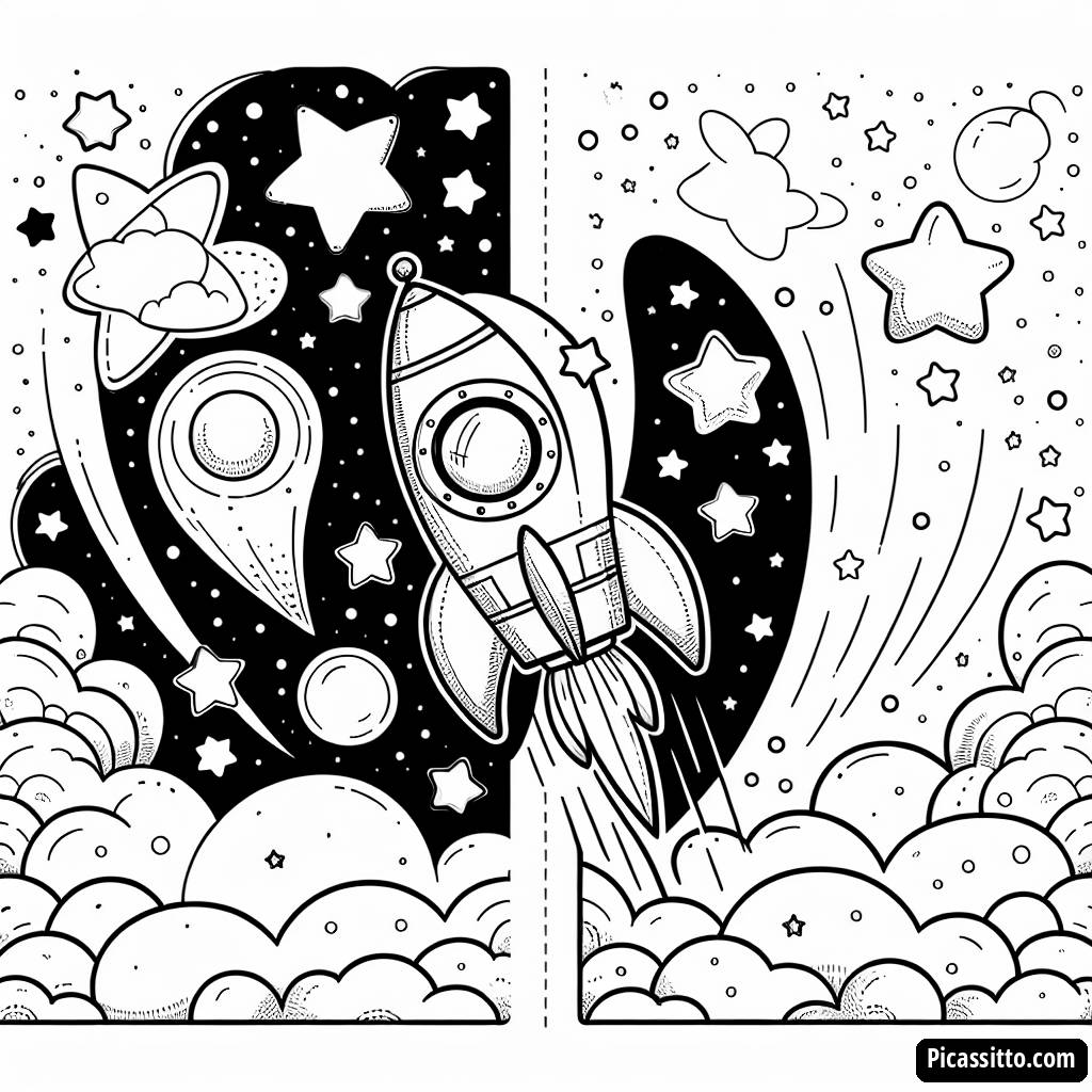Download our free and printable rocket ship coloring page featuring a thrilling blast-off with flames and stars! Perfect for little space explorers.