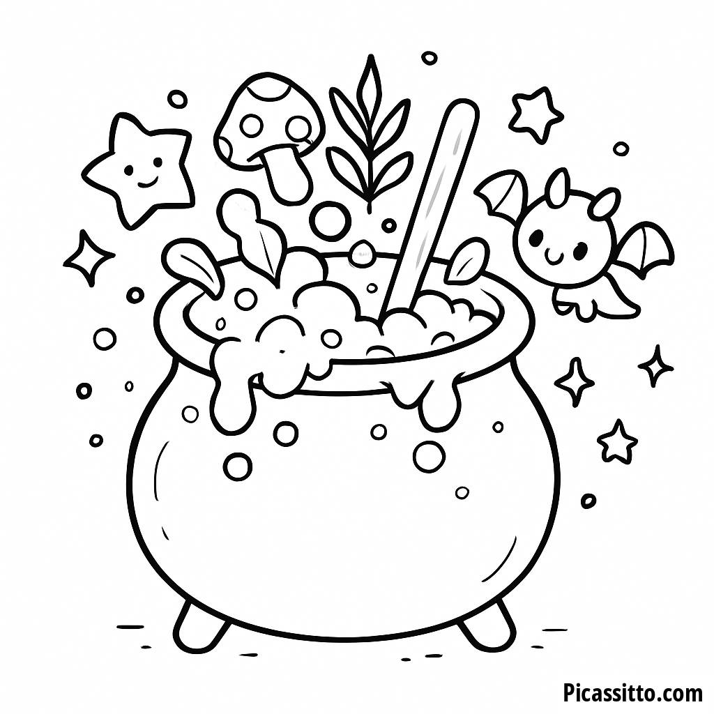 Dive into a world of magic with our free printable bubbling potion cauldron coloring page, featuring colorful ingredients and enchanted creatures ready to be colored.