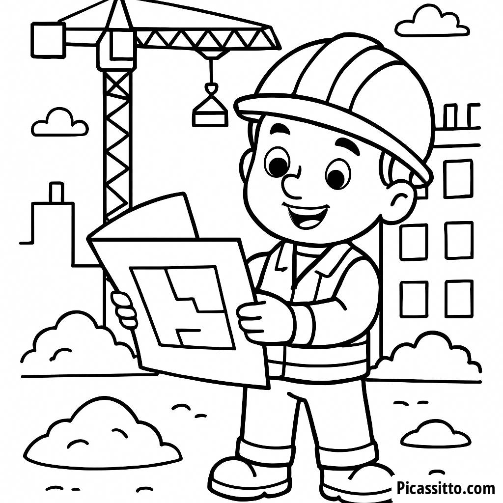 Download this free and printable cheerful construction worker coloring page, perfect for kids who love building and architecture!