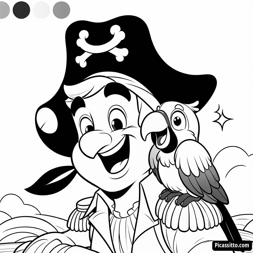 Enjoy this free and printable coloring page of a friendly parrot perched on a pirate's shoulder, perfect for young artists who love adventure!