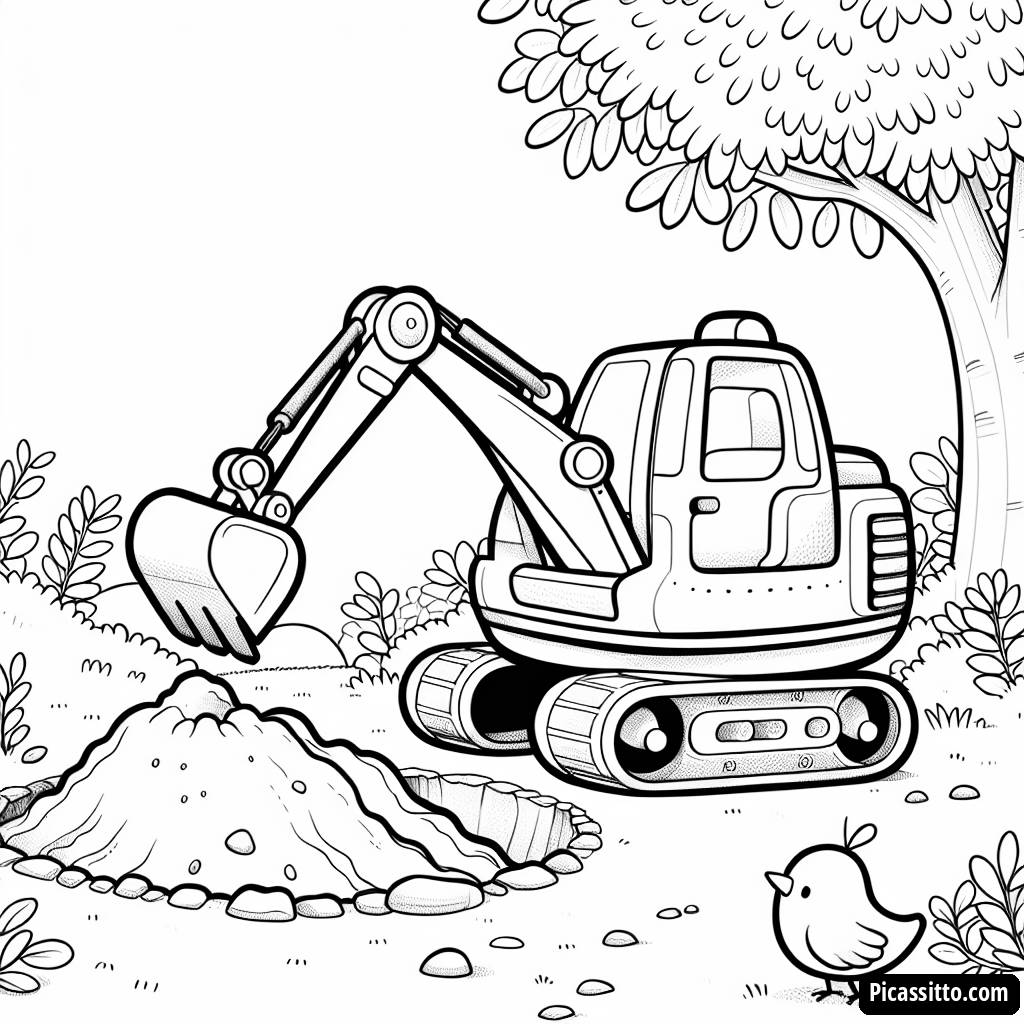 Excavator Digging Coloring Page