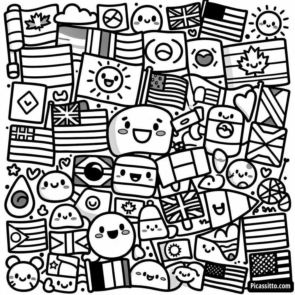 Fun National Flags Coloring Page for Kids