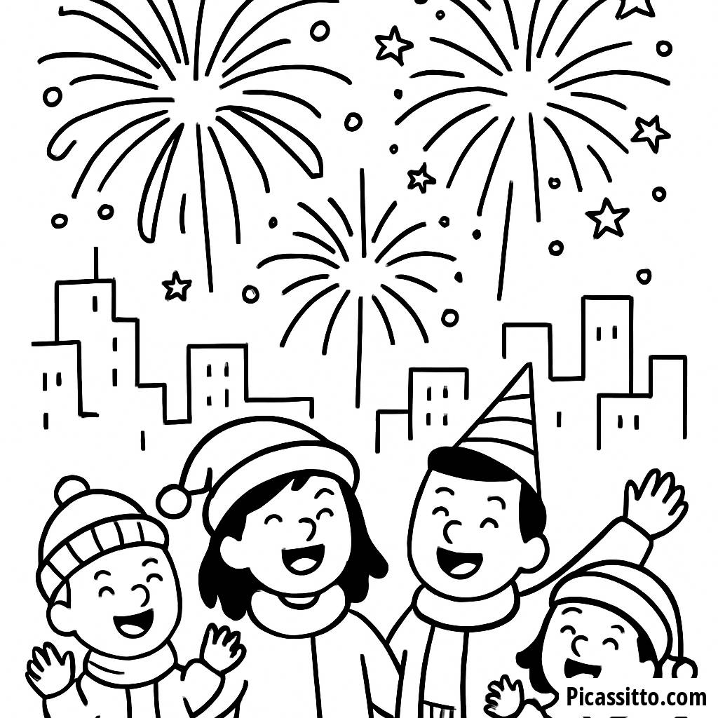 New Year Fireworks Coloring Page