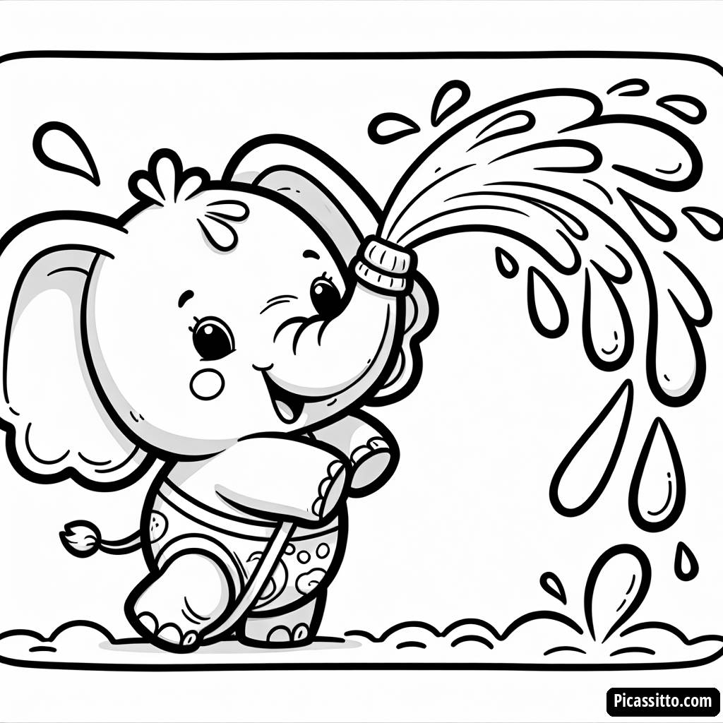 Enjoy this free and printable coloring page of a playful elephant spraying water from its trunk! Perfect for kids who love wild animals.