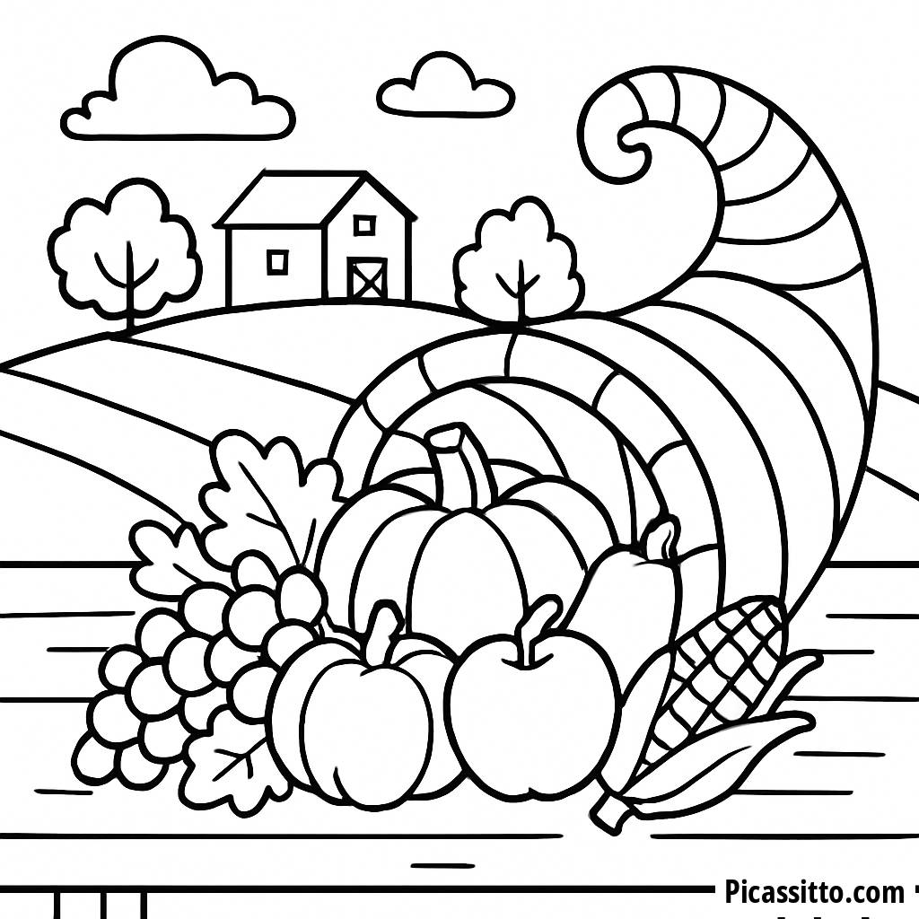 Thanksgiving Cornucopia Coloring Page