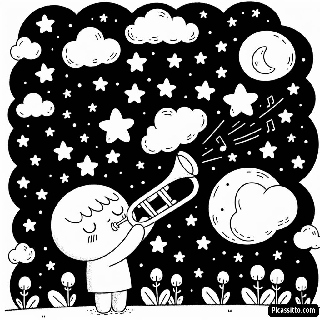 Enjoy this free and printable trumpet coloring page, where you can color musical stars shining in the night sky. Perfect for little musicians and art lovers!