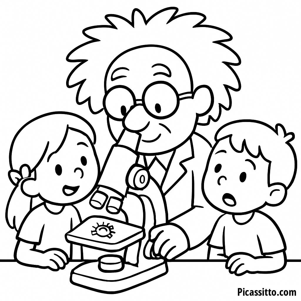 Explora las Maravillas de la Ciencia: Página para Colorear de Niños Observando a un Científico