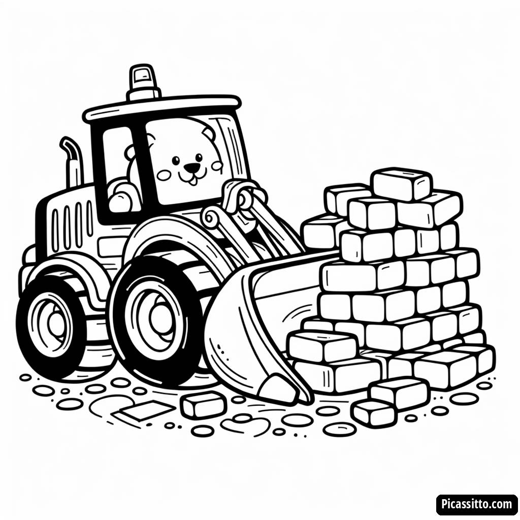 Descarga esta página para colorear del bulldozer amistoso, gratuita e imprimible, y observa cómo la creatividad de tu hijo se despliega mientras colorea un sitio de construcción con ladrillos coloridos.