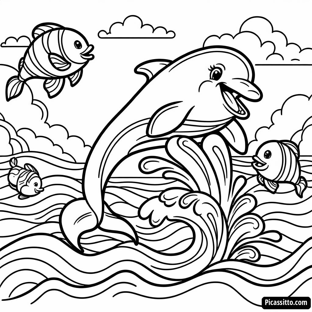 Sumérgete en la diversión con nuestra página para colorear de delfín saltador, ¡totalmente gratis y imprimible! Ideal para los niños que aman los animales marinos.