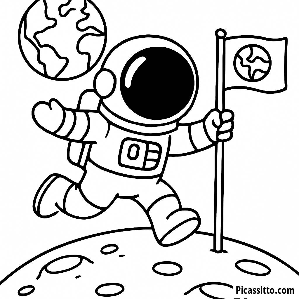 Página para Colorear de Astronauta Saltando en la Luna