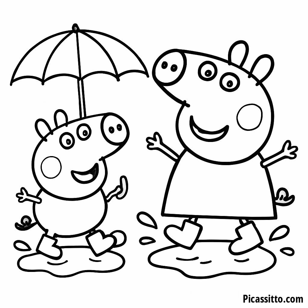 Página para Colorear de un Divertido Picnic con Mamá Pig, Papá Pig, Peppa y Amigos Peppa Pig, Dibujos Animados y Personajes