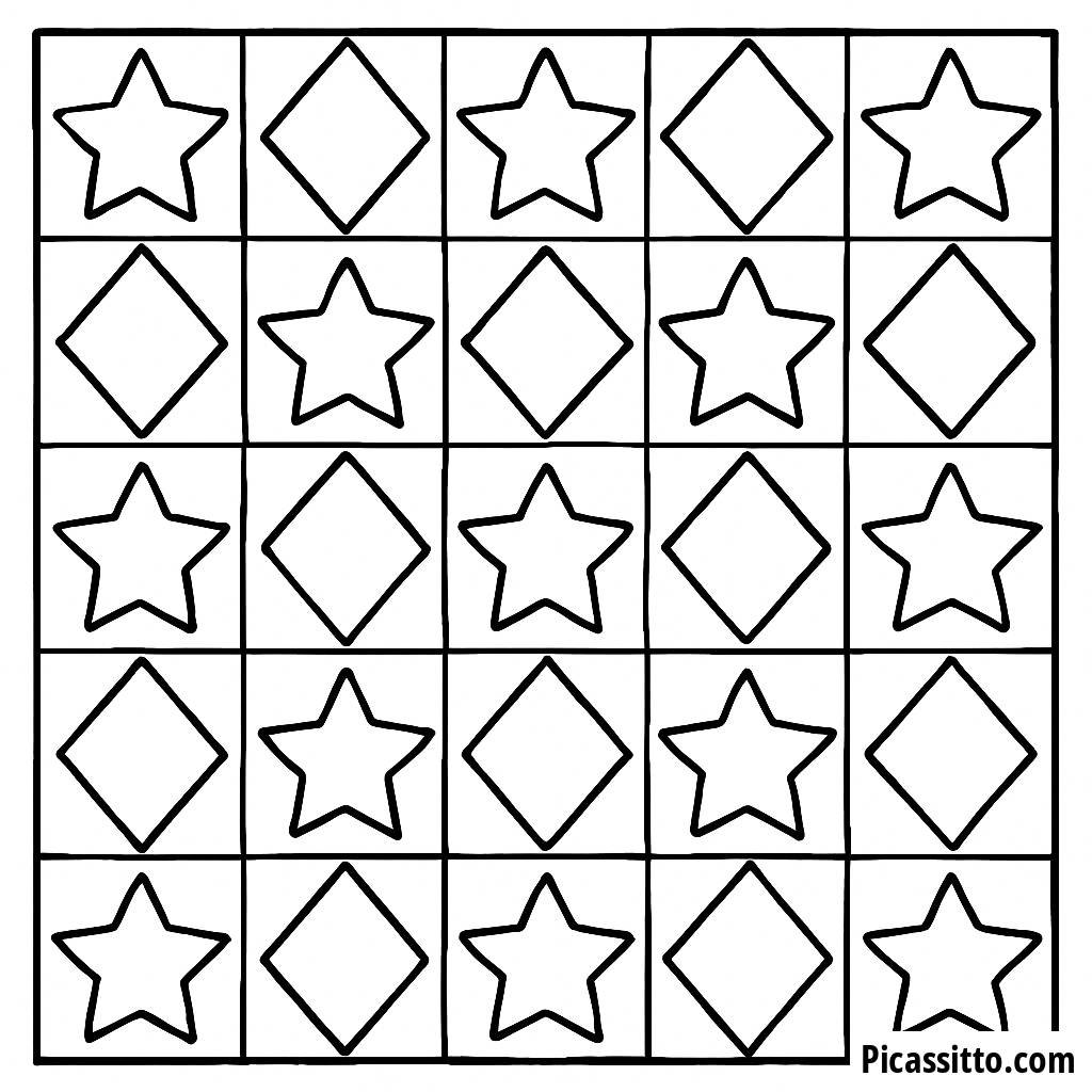 Disfruta de esta página para colorear gratuita y imprimible de Estrellas y Diamantes, ¡perfecta para despertar la creatividad con un divertido patrón geométrico!