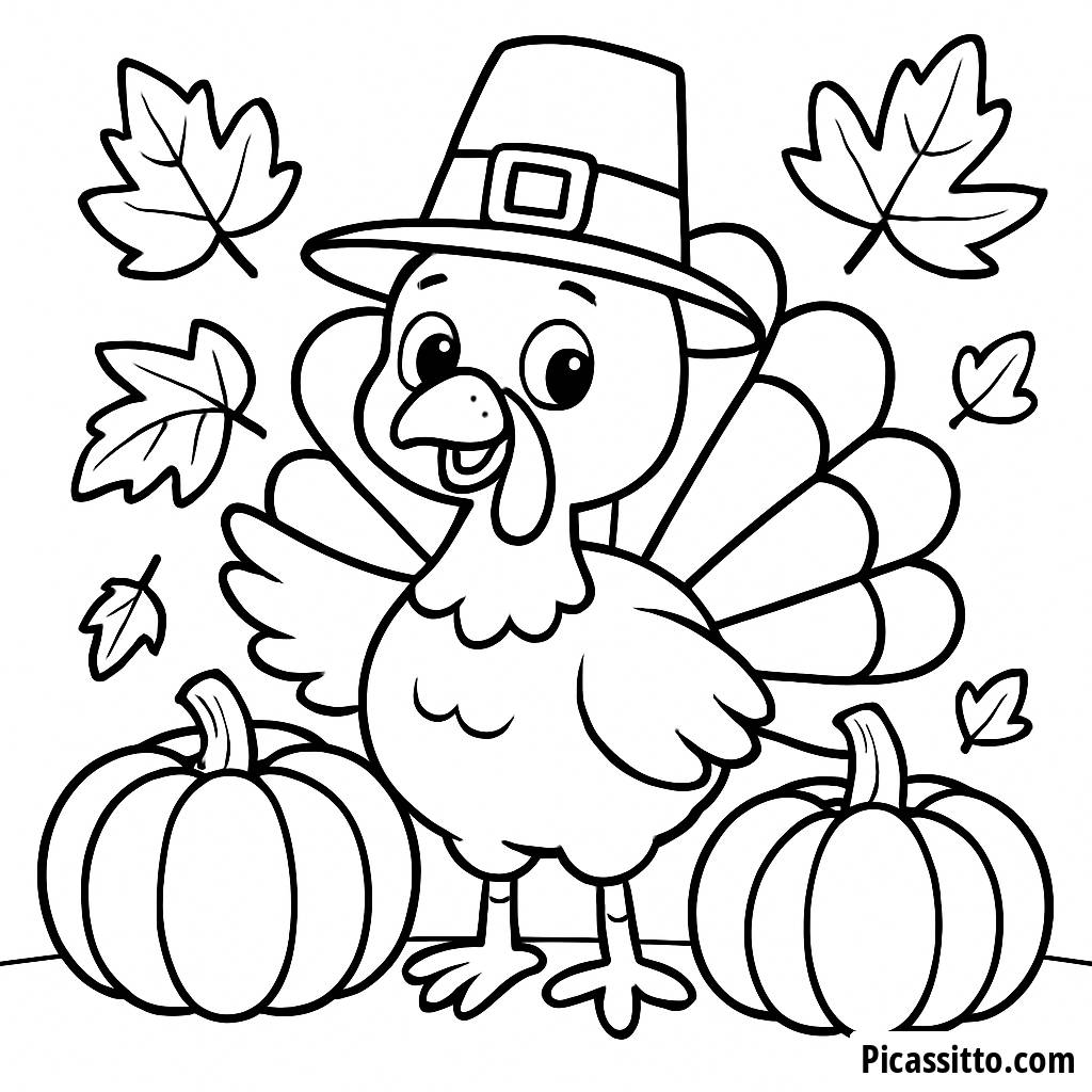 Téléchargez cette page à colorier de dinde joyeuse gratuitement et imprimable, parfaite pour s'amuser à Thanksgiving entourée de citrouilles et de feuilles d'automne!