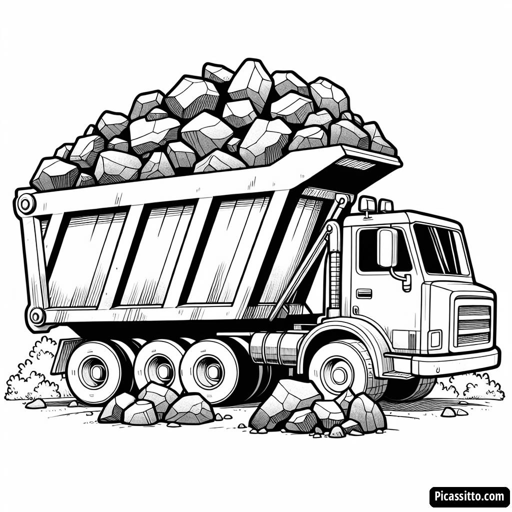Page à Colorier: Camion-Benne Débordant de Roches Colorées!