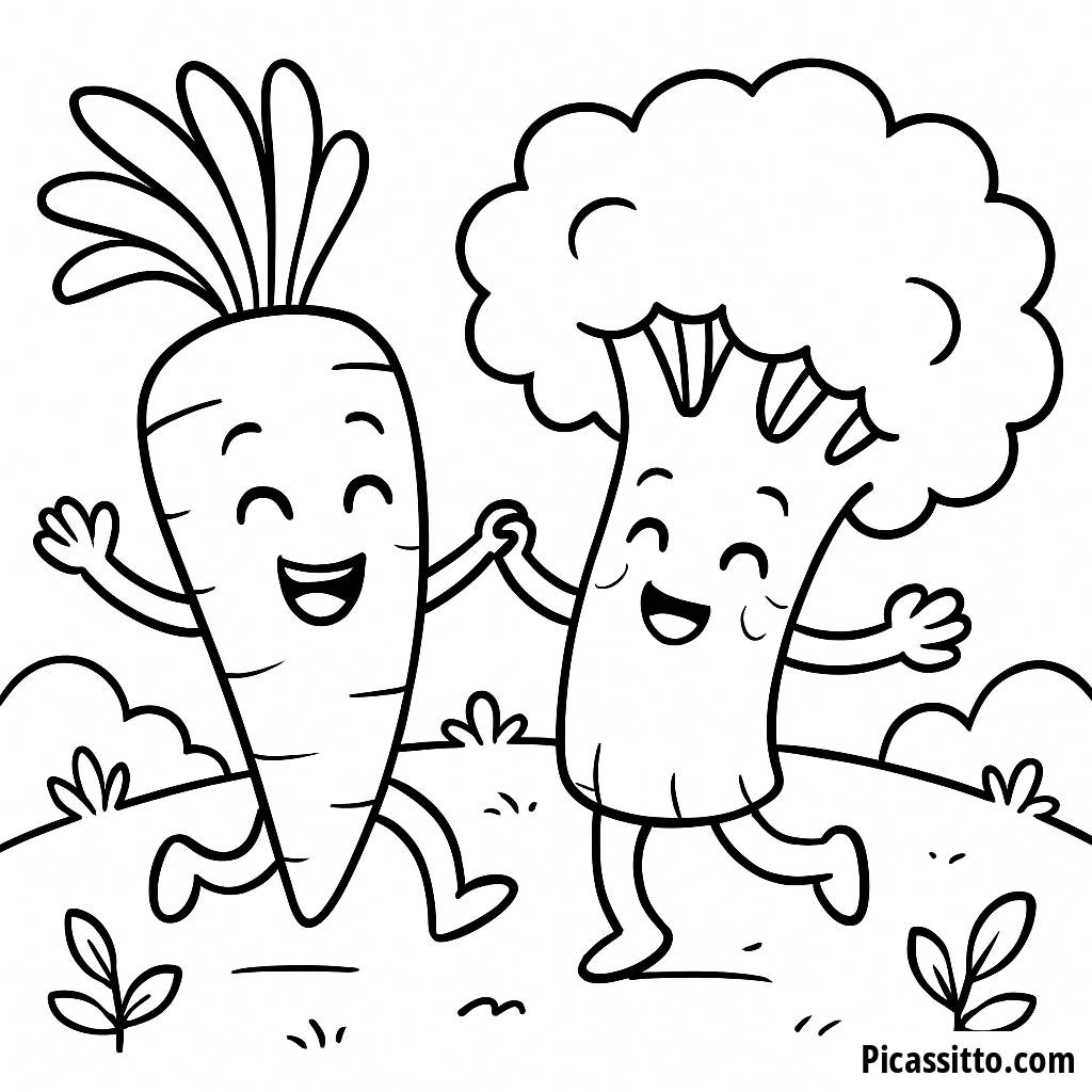 Préparez-vous à colorier une carotte joyeuse et un brocoli dansant ensemble dans un jardin vibrant ! Cette page à colorier est gratuite et imprimable pour un plaisir infini.