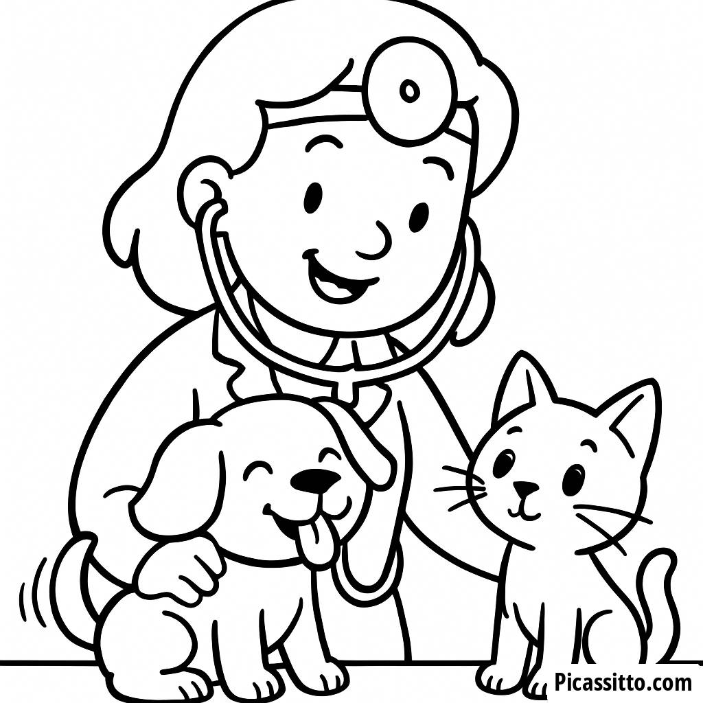 Cette page à colorier gratuite et imprimable présente un vétérinaire heureux examinant un chiot espiègle et un chaton curieux. Parfaite pour les enfants qui aiment les animaux !
