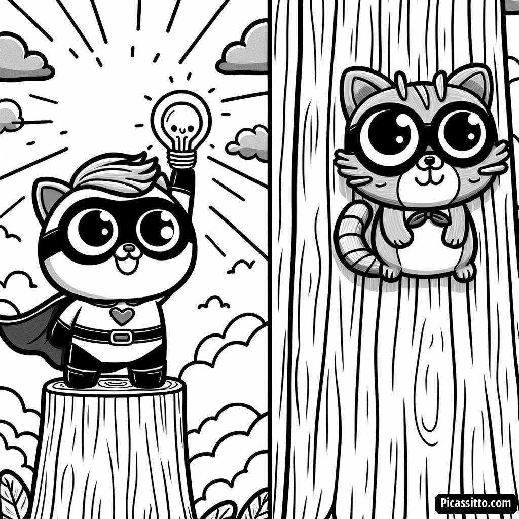 Page à Colorier : Super-Héros Sauvant un Chat d'un Arbre