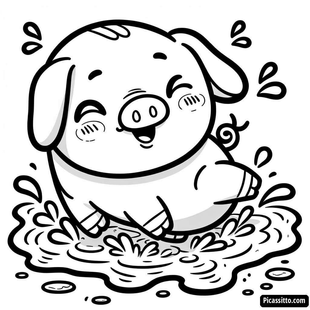 Profitez d'un moment agréable avec cette page à colorier gratuite et imprimable mettant en scène un cochon joueur éclaboussant dans une flaque de boue. Idéale pour les enfants qui adorent les animaux de la ferme!
