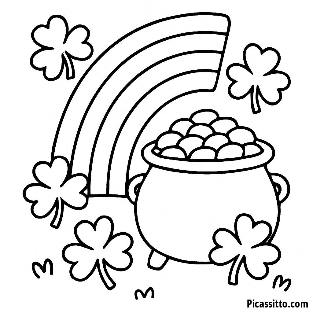 Profitez de cette page à colorier gratuite et imprimable de pot d'or, avec un arc-en-ciel coloré et des trèfles - parfaite pour s'amuser le jour de la Saint-Patrick !