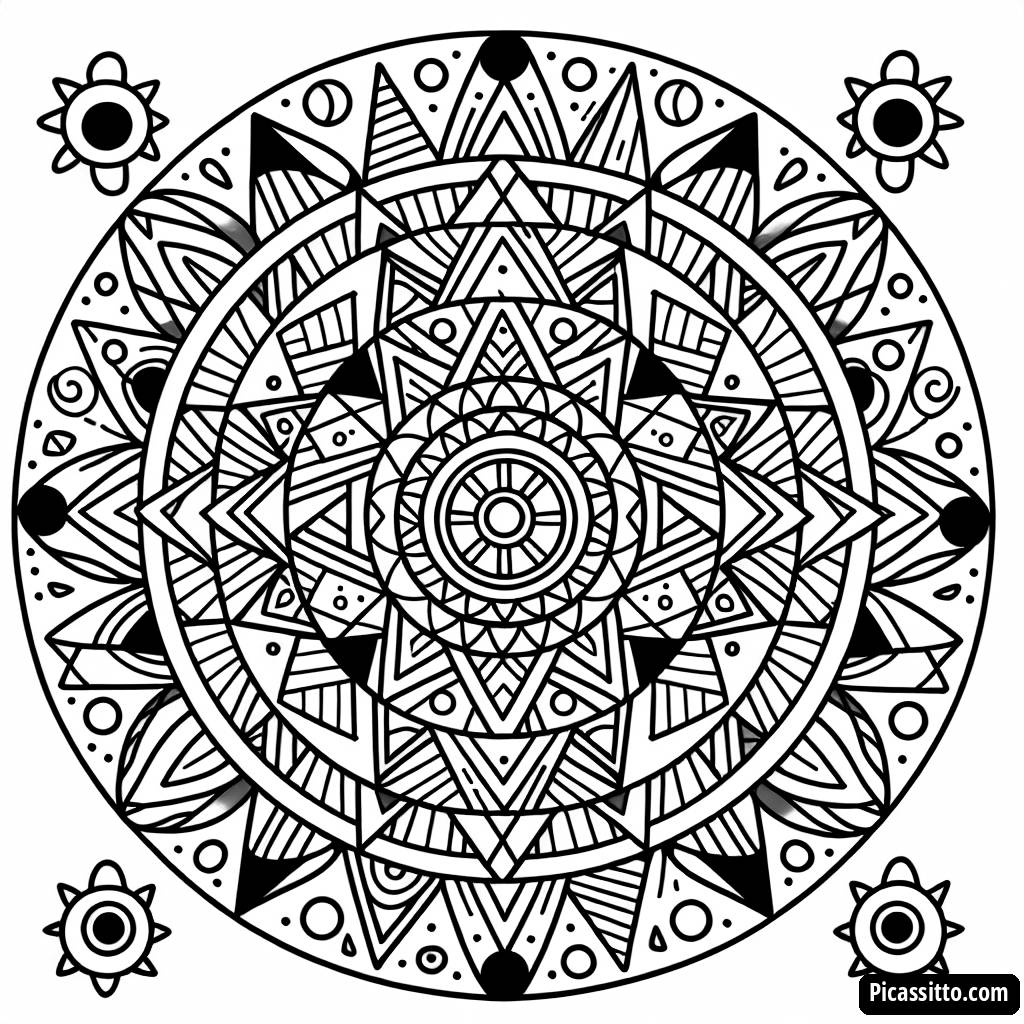 Page à Colorier Mandala Radieux de Triangles et Cercles