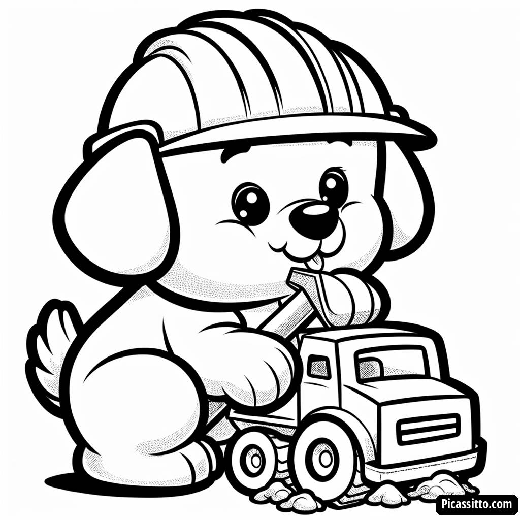 Profitez de cette page à colorier gratuite et imprimable mettant en scène Rubble en train de creuser avec son camion de construction et portant un casque. Idéale pour les jeunes fans de Paw Patrol !