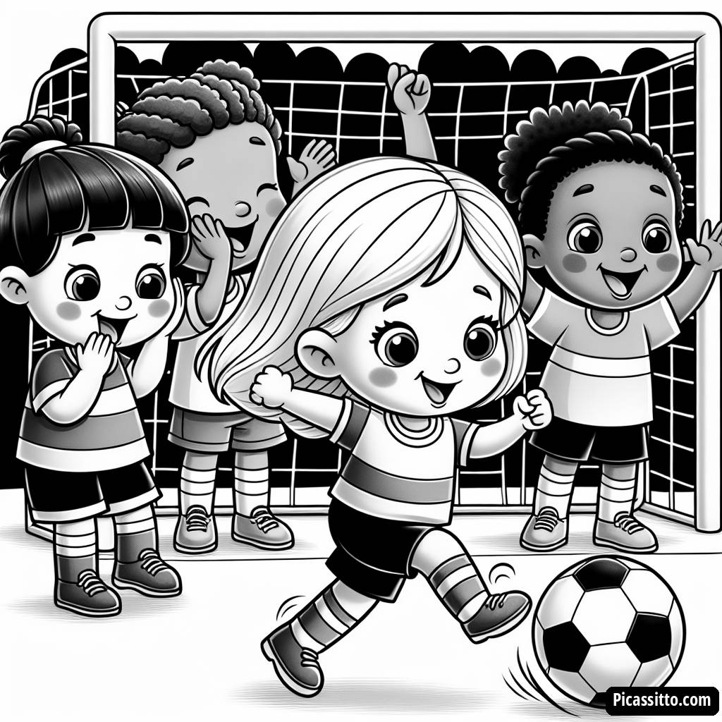 Téléchargez cette page à colorier gratuite et imprimable représentant un but au football, avec un enfant célébrant avec ses amis ! Parfaite pour les jeunes fans de sport.