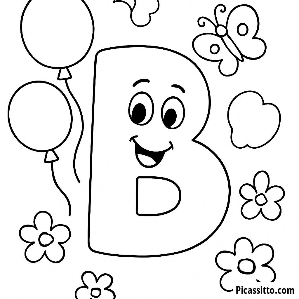 Pagina da Colorare la Lettera B con Palloni e Farfalle