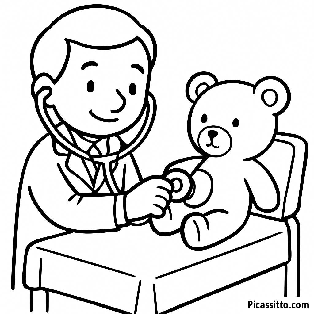 Scarica questa pagina da colorare gratuita e stampabile di un dottore che esamina un orsacchiotto! Perfetta per i piccoli artisti che amano fare i dottori.