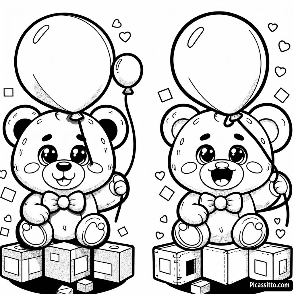 Scarica questa adorabile pagina da colorare gratuita e stampabile con un tenero orsetto felice che tiene un palloncino colorato, circondato da blocchi da costruzione. Perfetta per i giovani artisti!