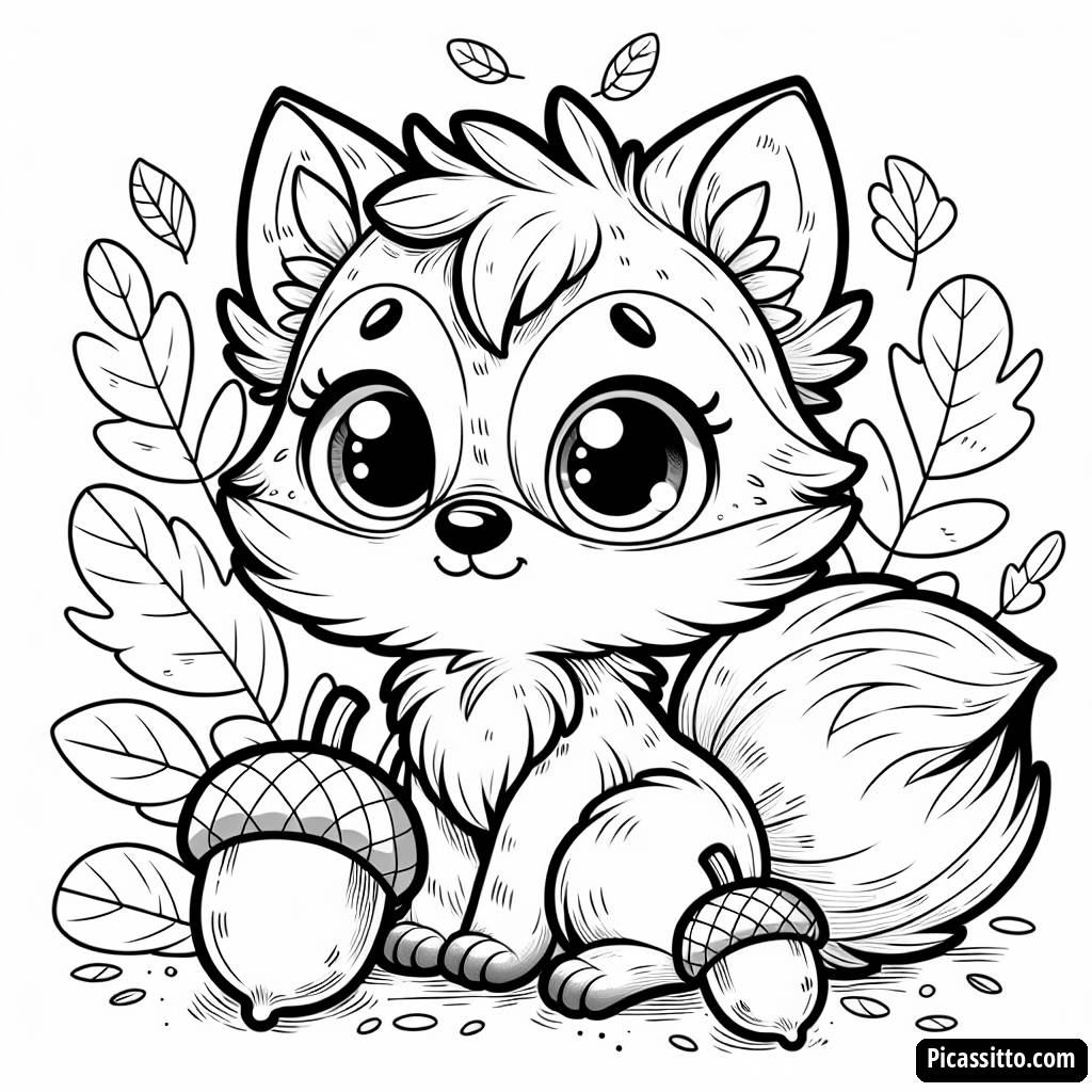 Goditi una pagina da colorare gratuita di Eevee circondato da bellissime foglie d'autunno e ghiande! Perfetta per i fan di Pokémon di tutte le età.