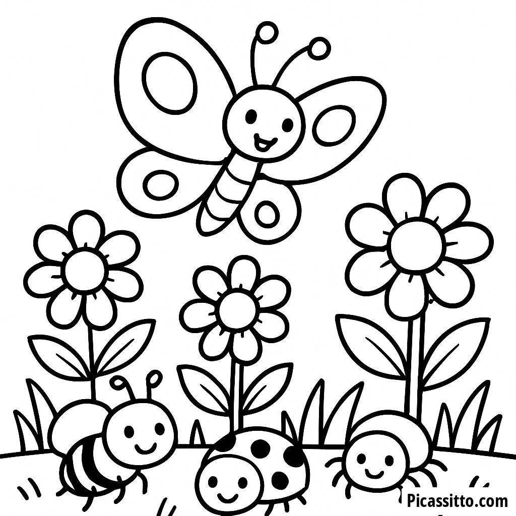Scarica questa pagina da colorare gratuita di Farfalla Che Fluttua, perfetta per i bambini che amano gli insetti! Guarda come colorano la farfalla e i bug sorridenti in un bellissimo campo di fiori.