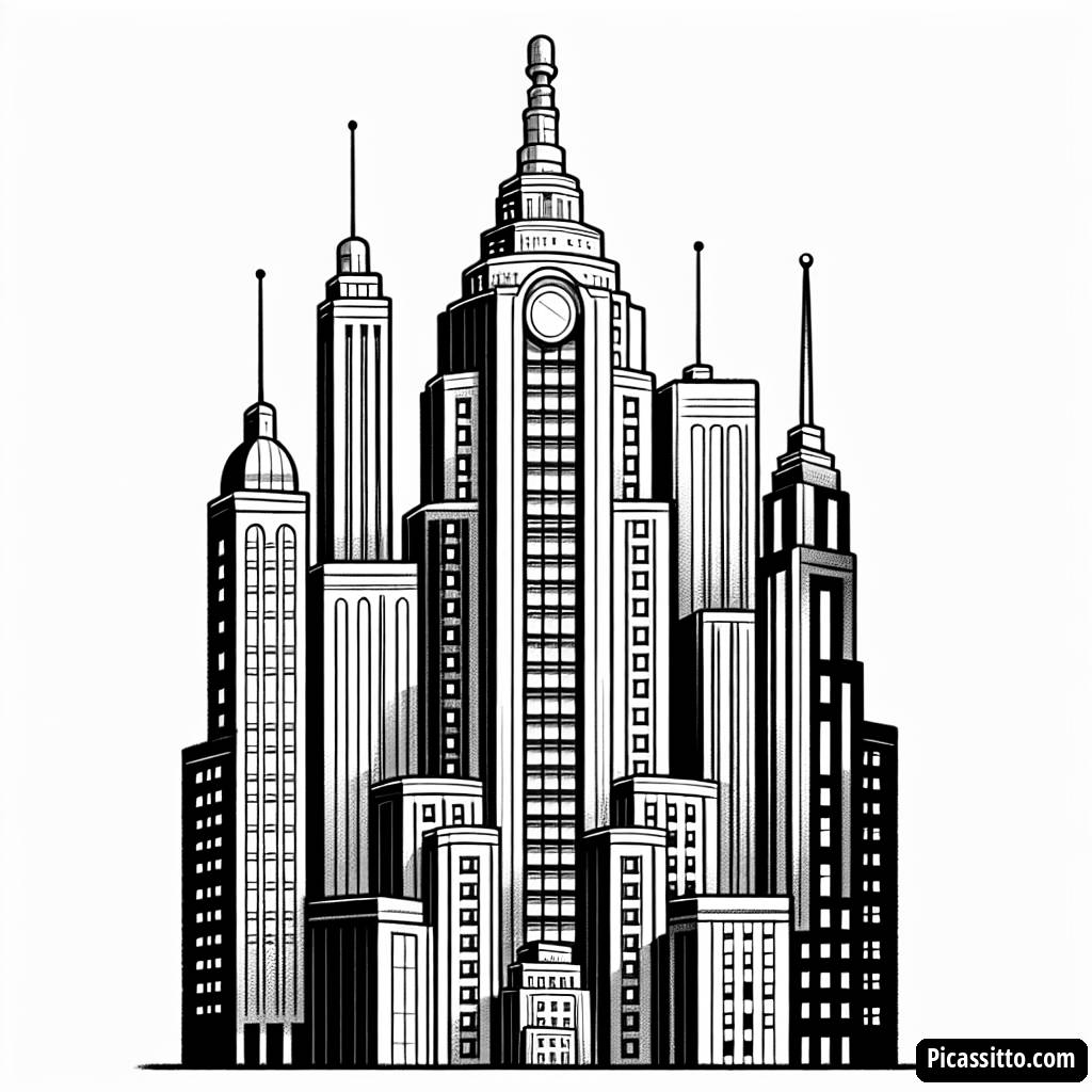 Esplora lo skyline urbano con la nostra pagina da colorare di grattacieli alta, gratuita e stampabile! Perfetta per piccoli architetti e appassionati di colori.