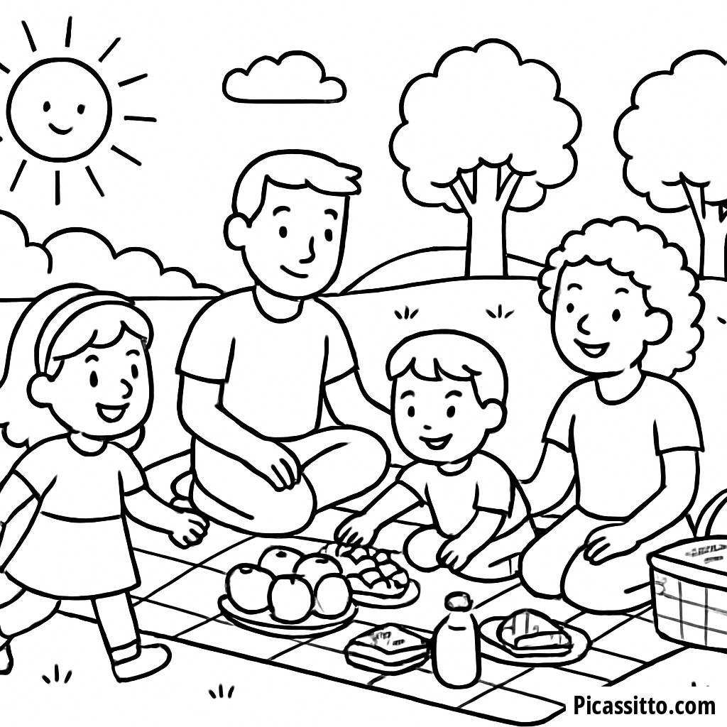 Goditi una deliziosa scena di picnic in famiglia con la nostra pagina da colorare gratuita e stampabile! Perfetta per i bambini per liberare la loro creatività.