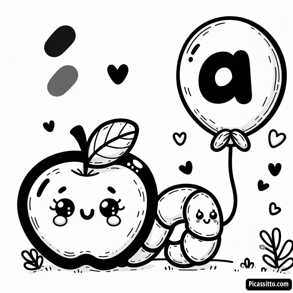 Aproveite esta página para colorir gratuita e imprimível, apresentando A de Maçã com um verme sorridente e B de Balão com corações flutuantes, perfeita para aprender o alfabeto enquanto se diverte!