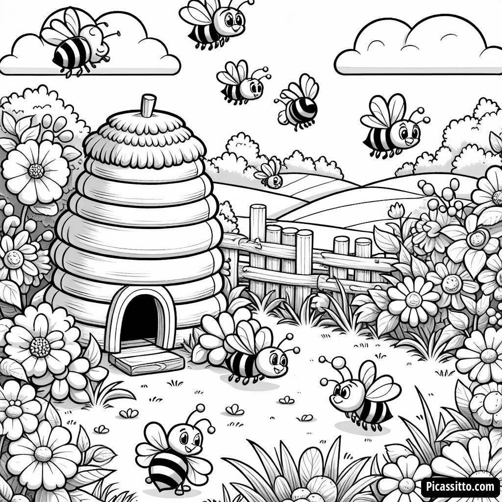 Aproveite esta página para colorir de abelhas zumbidoras, gratuita e imprimível, perfeita para crianças que amam a natureza e os insetos!