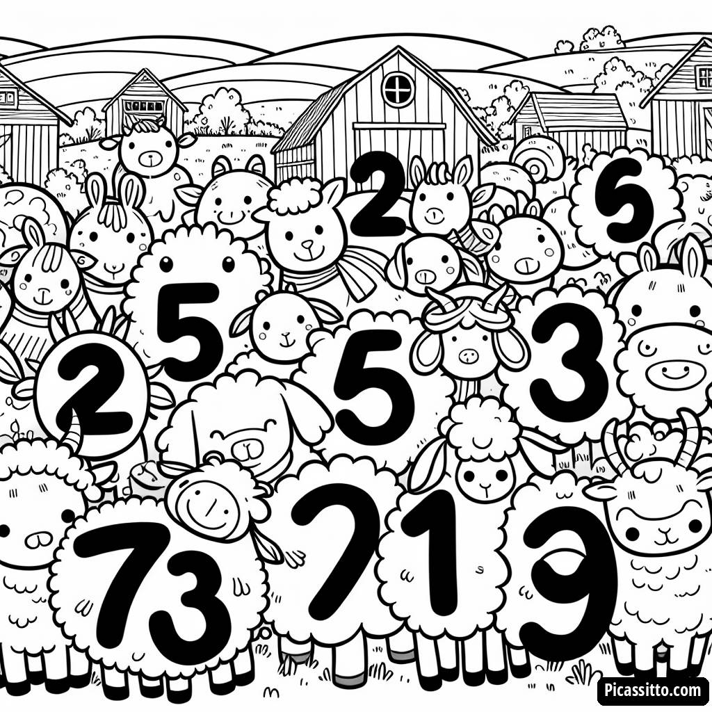 Página para Colorir de uma Fazenda Alegre com Animais Contadores