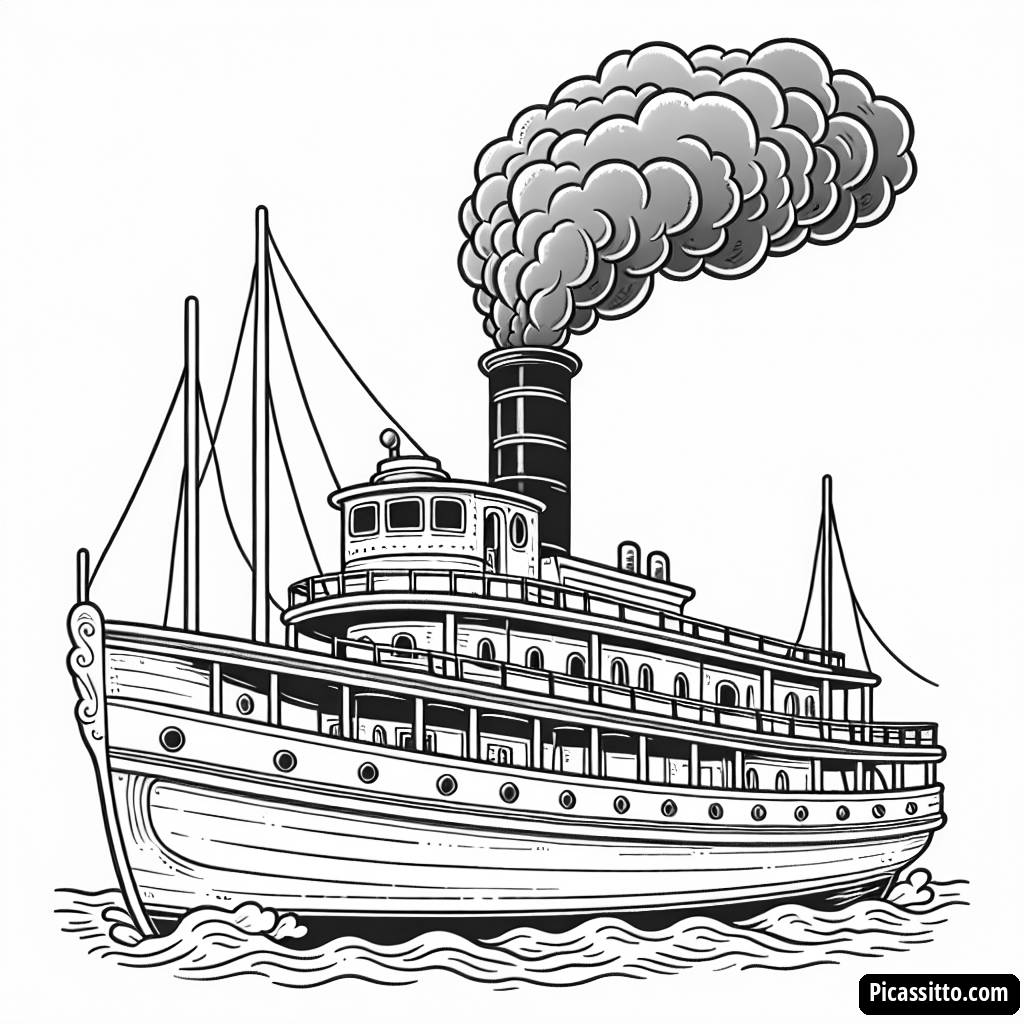 Baixe esta página para colorir de um clássico vapor gratuitamente e impressa para que seus pequenos se divirtam. Deixe a criatividade deles navegar enquanto coloram a fumaça e o majestoso barco!