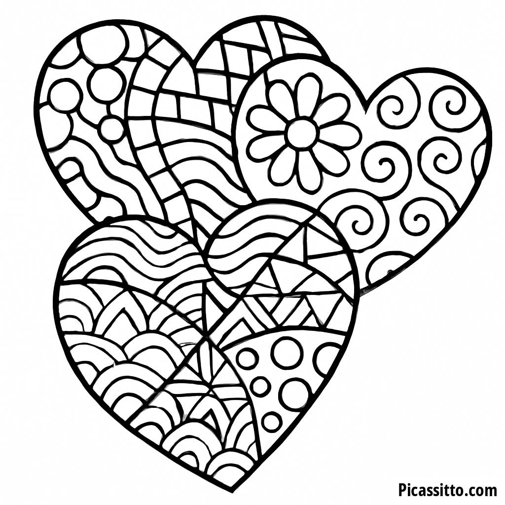 Aproveite esta página para colorir gratuita e imprimível, com belos corações entrelaçados preenchidos com intrincados padrões zentangle e doodles divertidos para estimular sua criatividade e relaxamento.