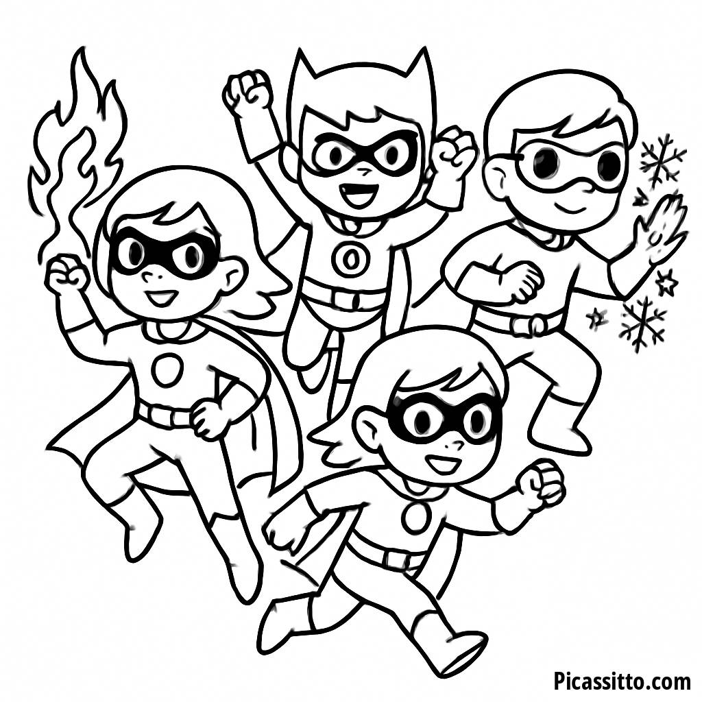 Prepare-se para soltar sua criatividade com nossa página para colorir gratuita da Equipe de Super-heróis em Ação! Cada herói apresenta poderes únicos, tornando-a uma aventura divertida para as crianças.