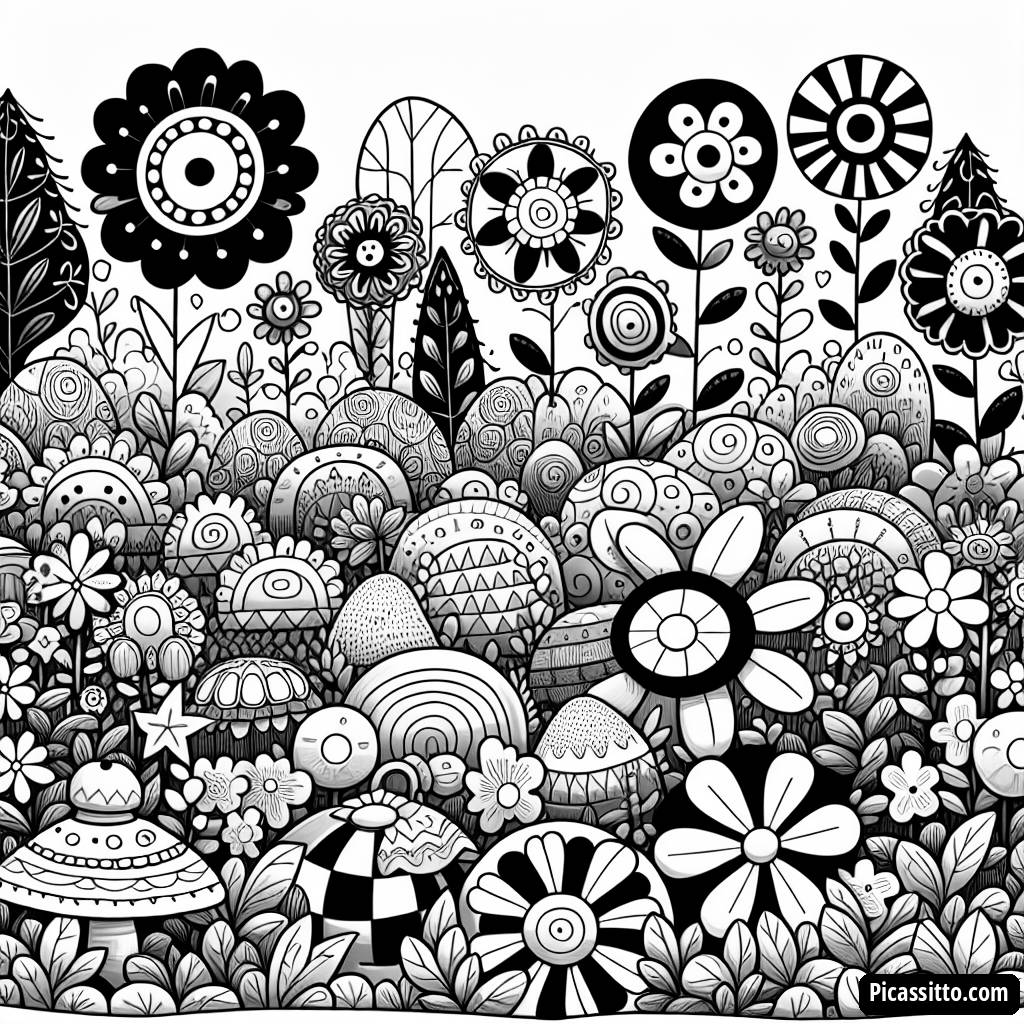 Página de Colorir do Jardim de Formas Divertidas