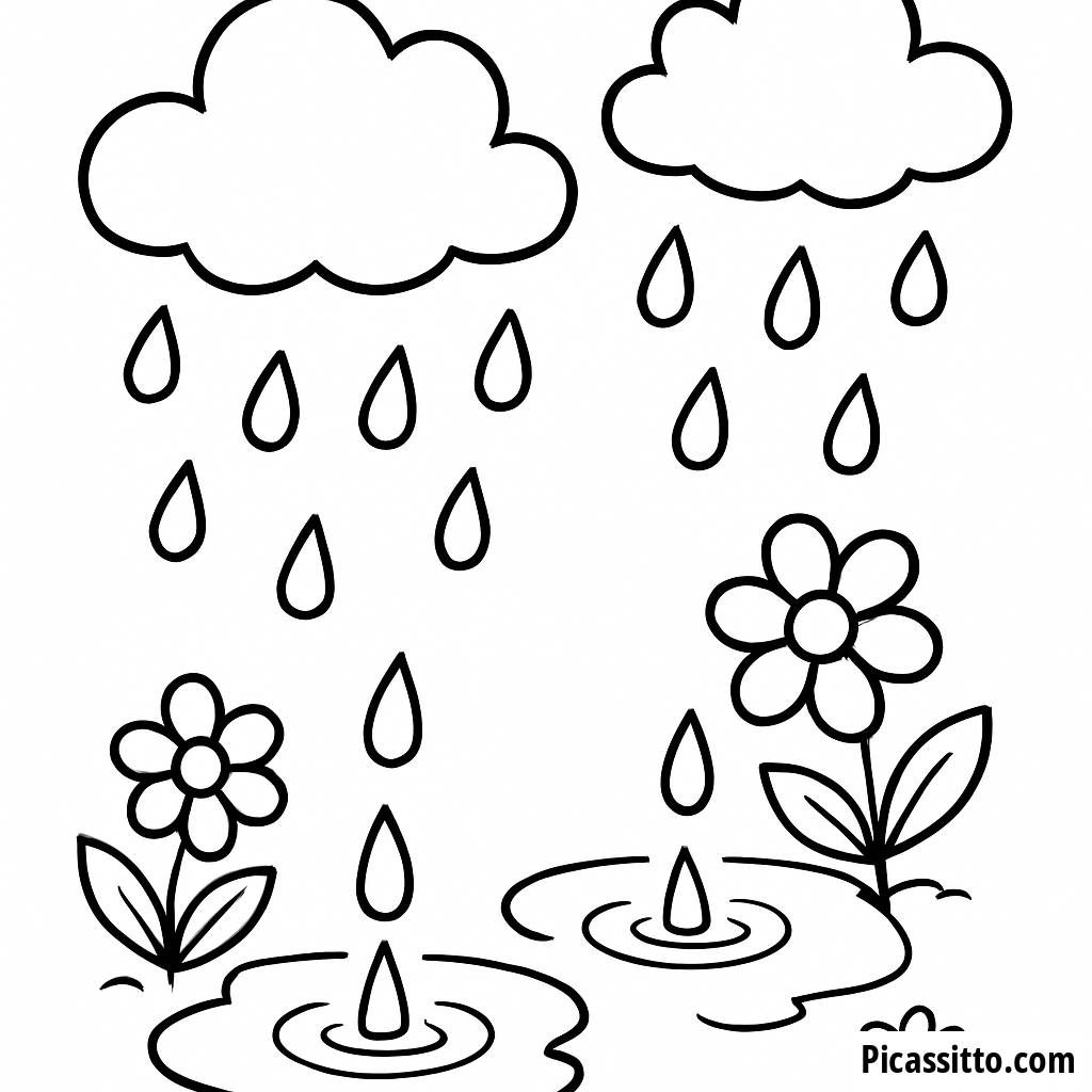 Наслаждайтесь этой бесплатной и печатной раскраской с милыми каплями дождя, которые брызгают в лужи, с цветами, цветущими поблизости. Идеально для маленьких художников, которые любят погоду!