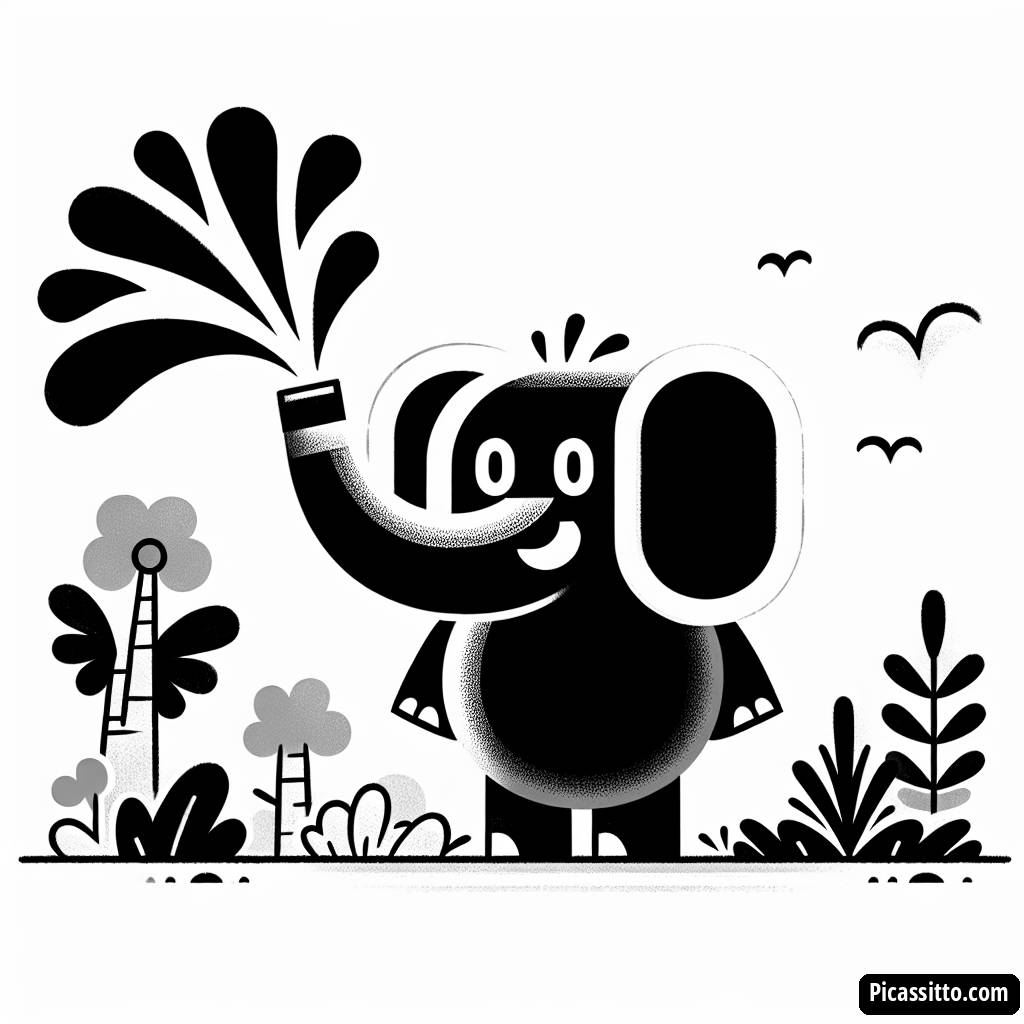 Наслаждайтесь этой бесплатной раскраской с изображением слона, который брызгает водой в густом джунглевом окружении. Идеально для детей, изучающих буквы!