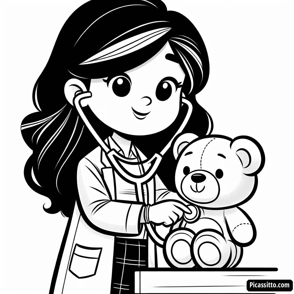 Скачайте эту бесплатную и распечатываемую раскраску с добрым врачом, который осматривает игрушечного медведя! Идеально подходит для вдохновения творчества у детей.