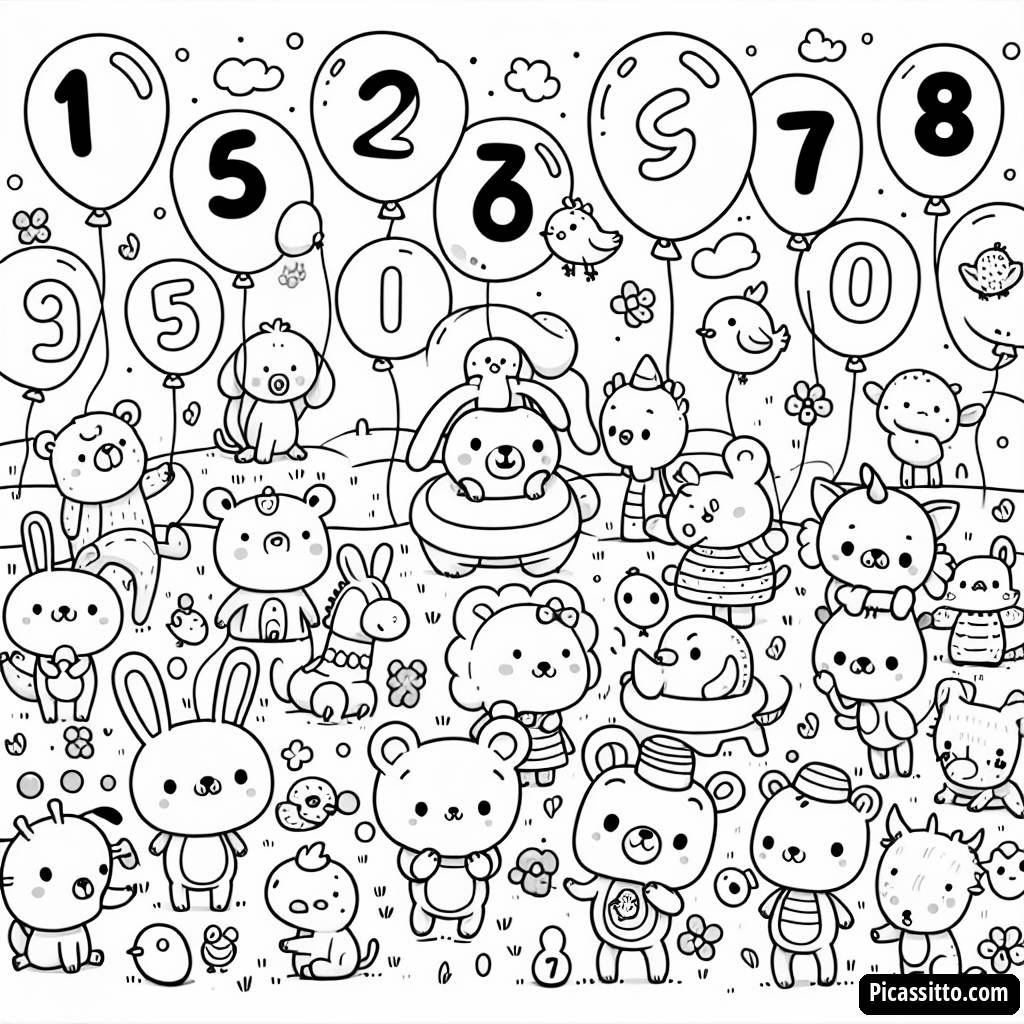 Скачайте эту бесплатную и распечатываемую раскраску с веселыми животными и шарами, пронумерованными от 0 до 9, чтобы весело учиться считать!